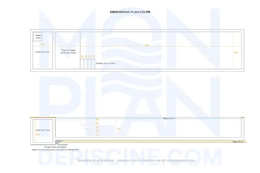 Ce plan assure la cohérence entre le plan des réseaux hydrauliques du bassin et l’organisation du local technique, garantissant une circulation efficace de l’eau.