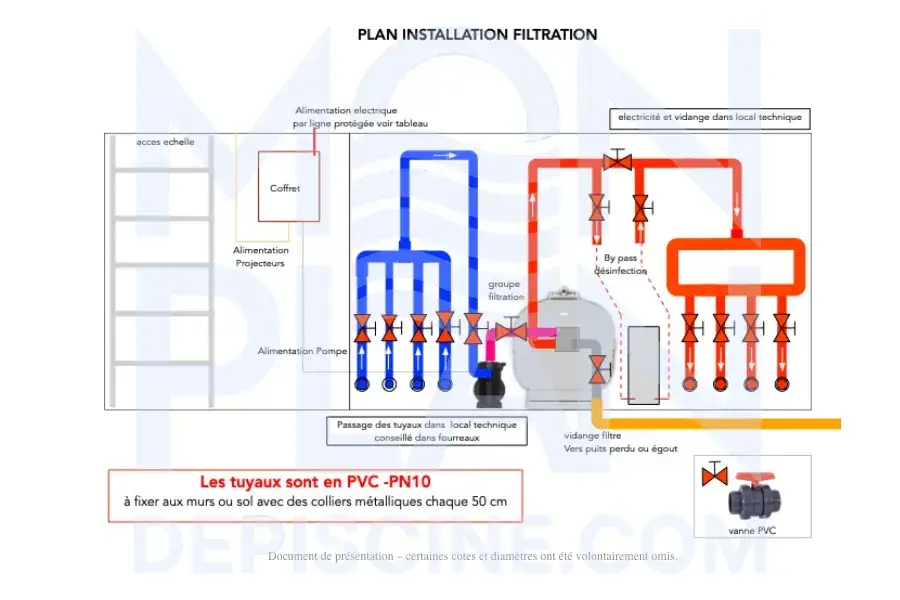 Certaines options spécifiques, comme un banc de massage hydraulique, l’implantation d’un volet immergé sous plage, peuvent nécessiter une étude technique complémentaire afin d’adapter précisément la structure et le réseau hydraulique correspondant.